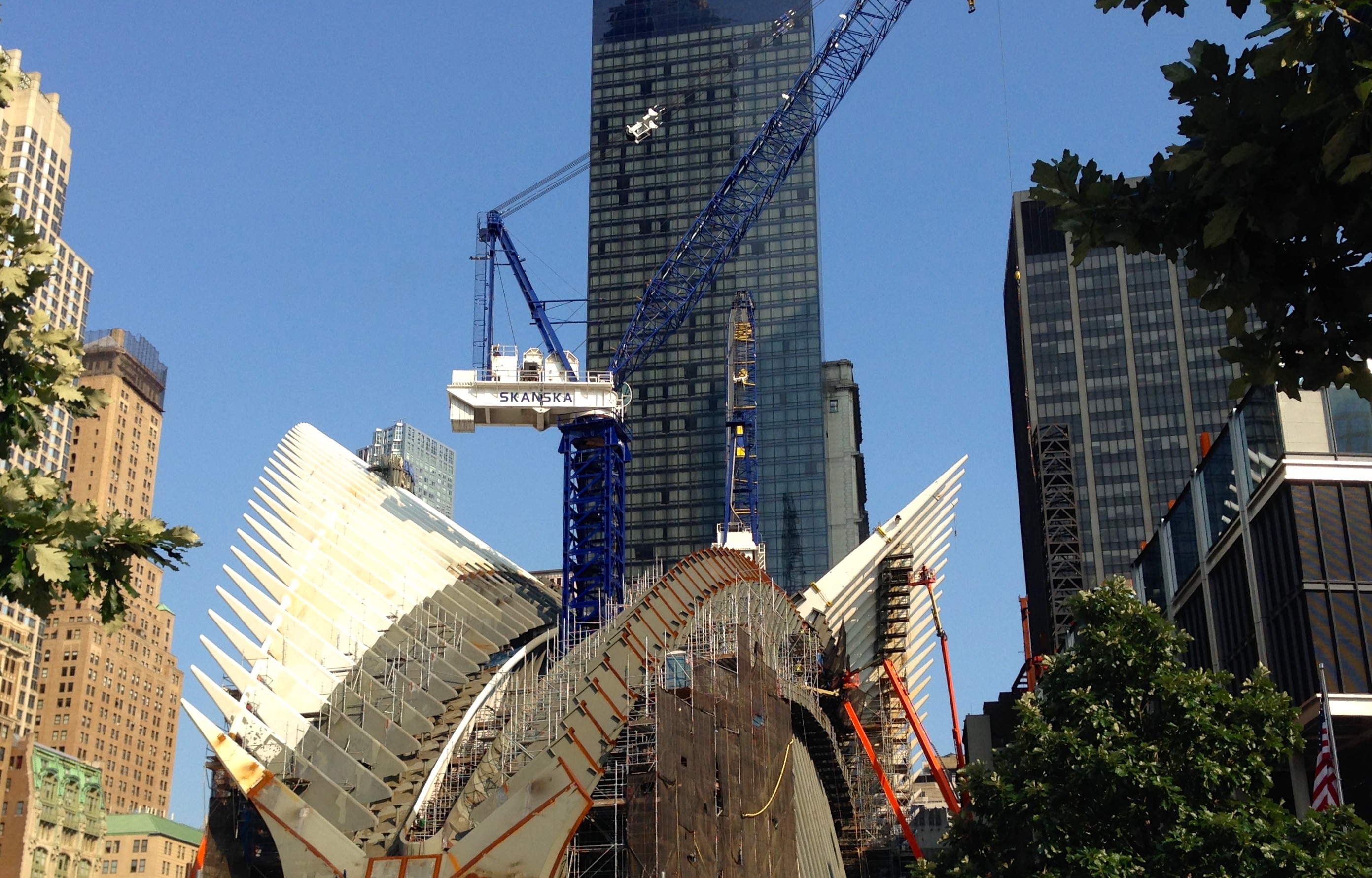 After I had my ticket, I waited near the north pool and watched the work construction on the transportation hub. Any time the cranes fired up, most people in the area turned to watch. I look forward to returning once the hub is complete.