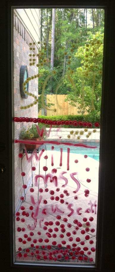 Everyone else in the house had to get up early on Friday for school or work, but they let me sleep in.  When I got downstairs, my things all packed up and ready to go, I found this touching farewell.
